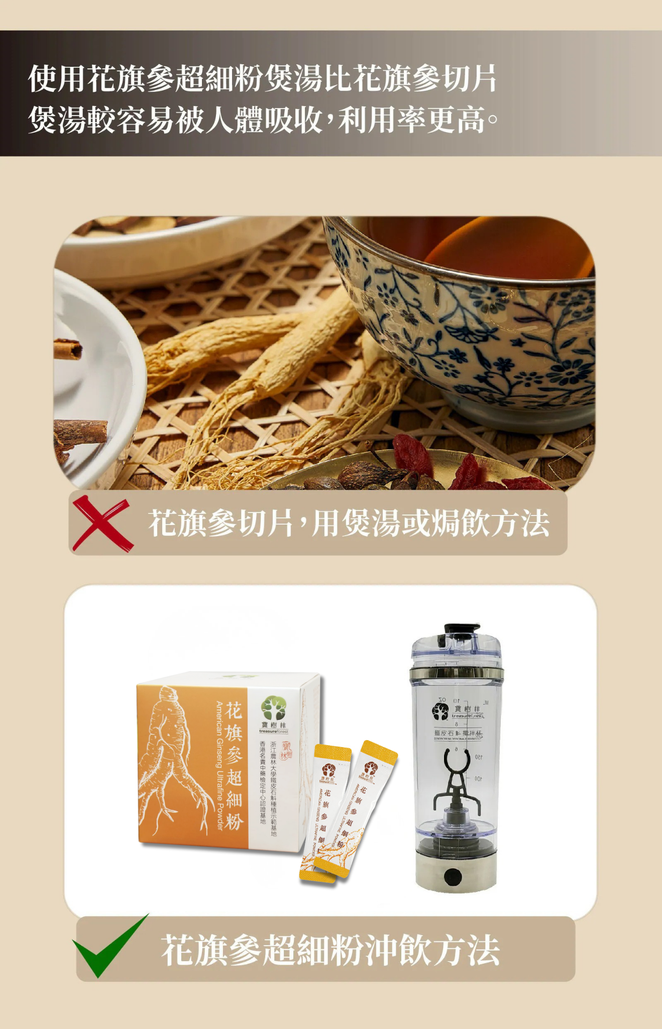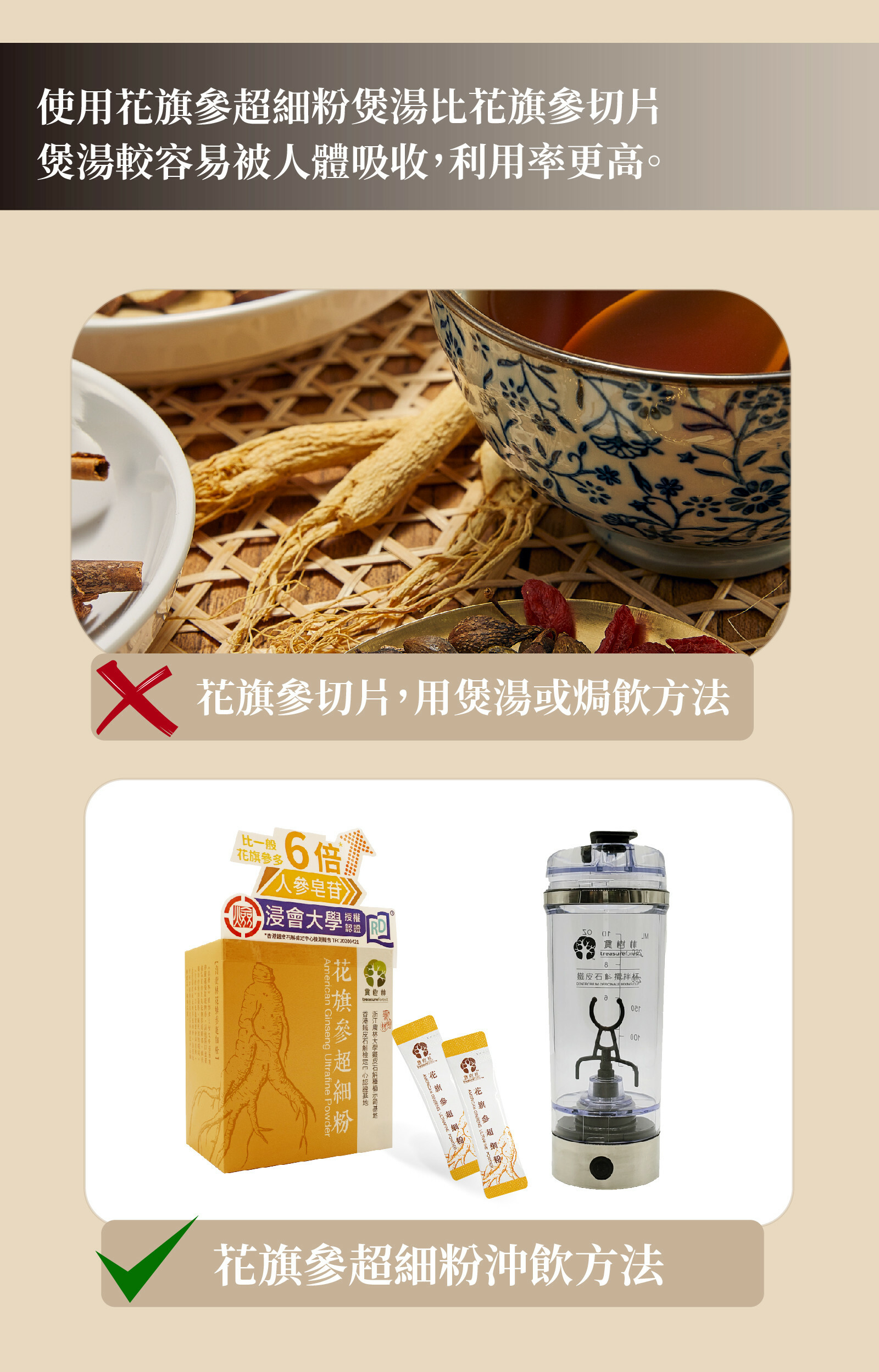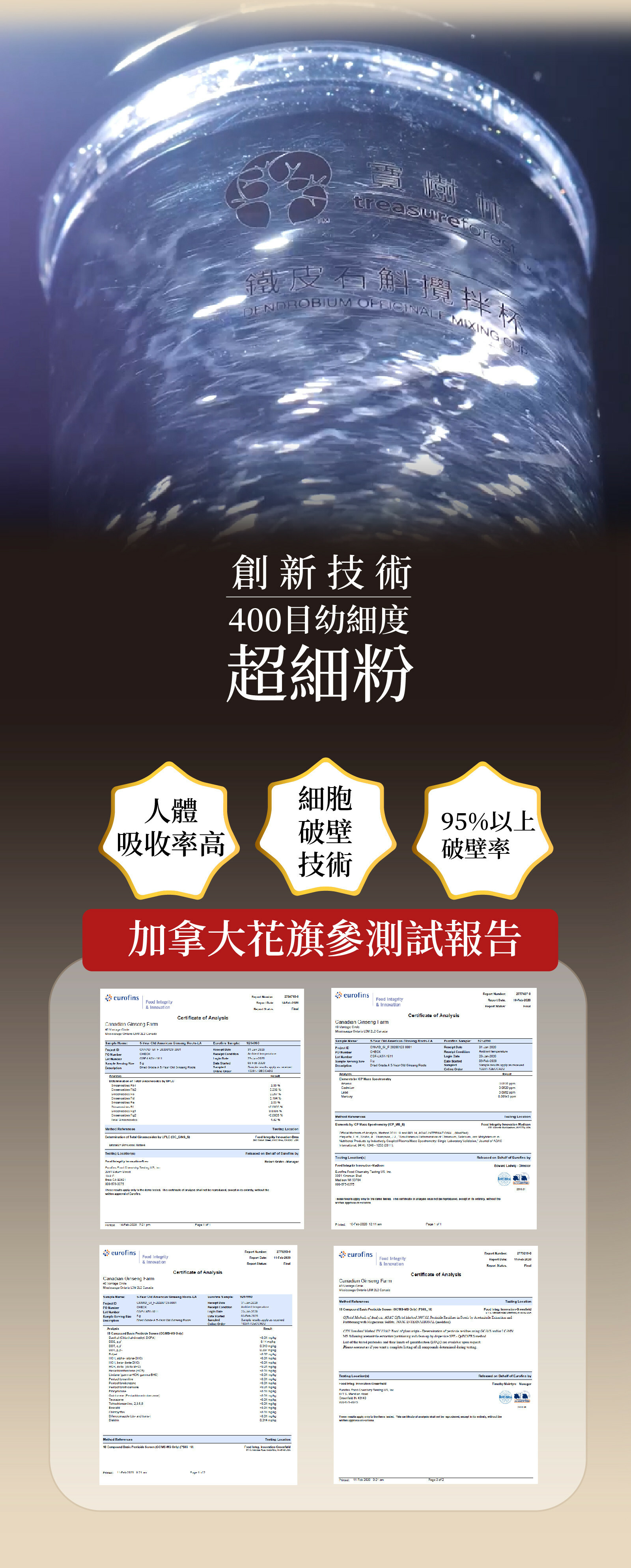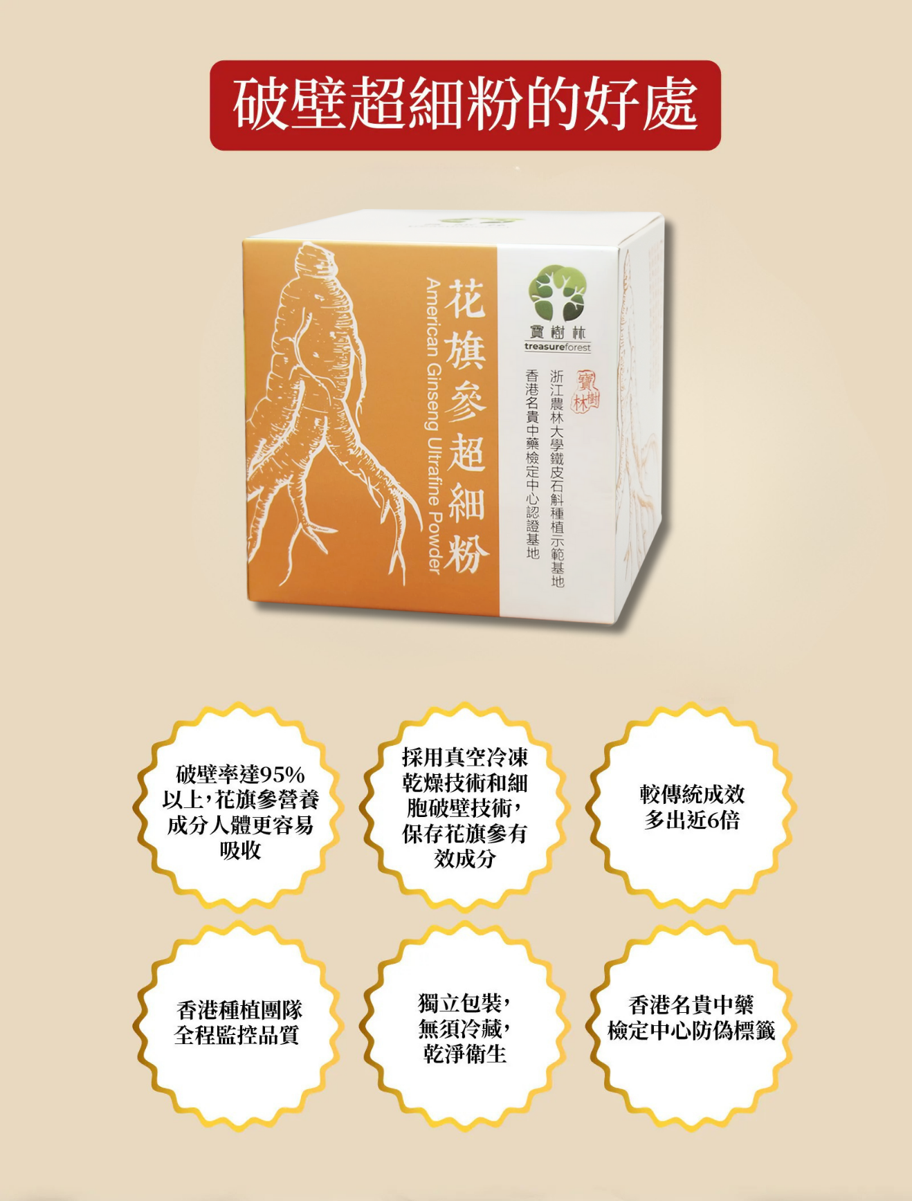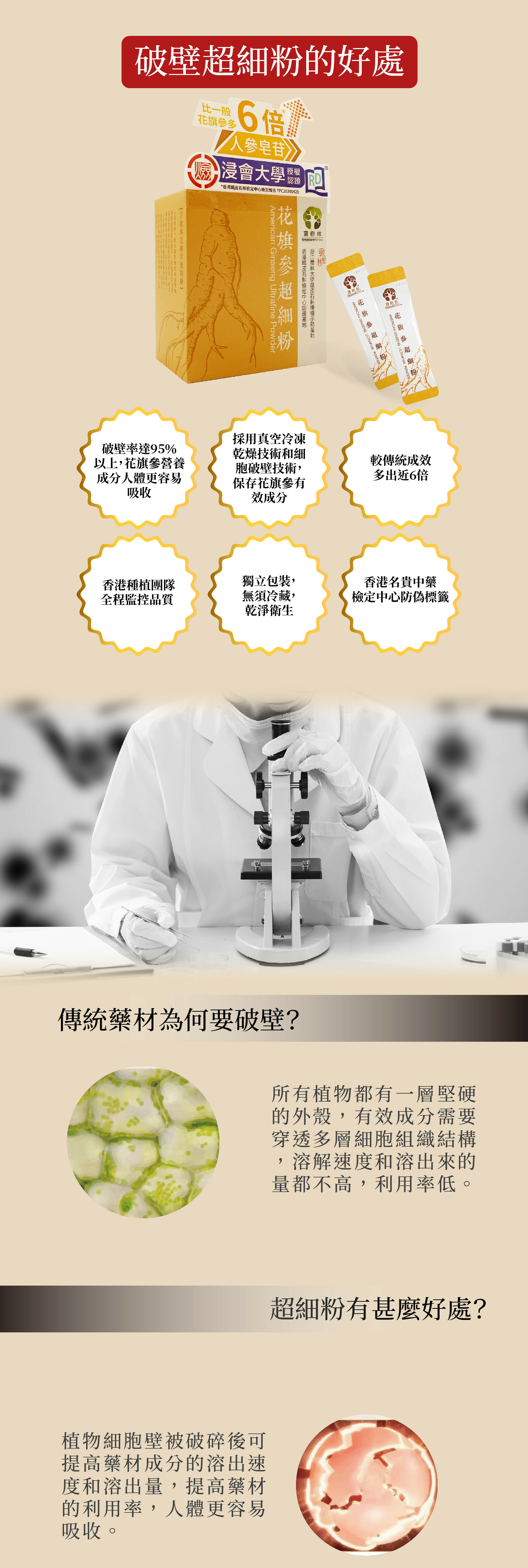 本產品從加拿大安大略省西南部嚴選優質花旗參貨源,採用先進冷凍乾燥粉碎技術生產純花旗參超細粉,使其達到95%以上的破壁率,營養成分極容易被人體吸收。