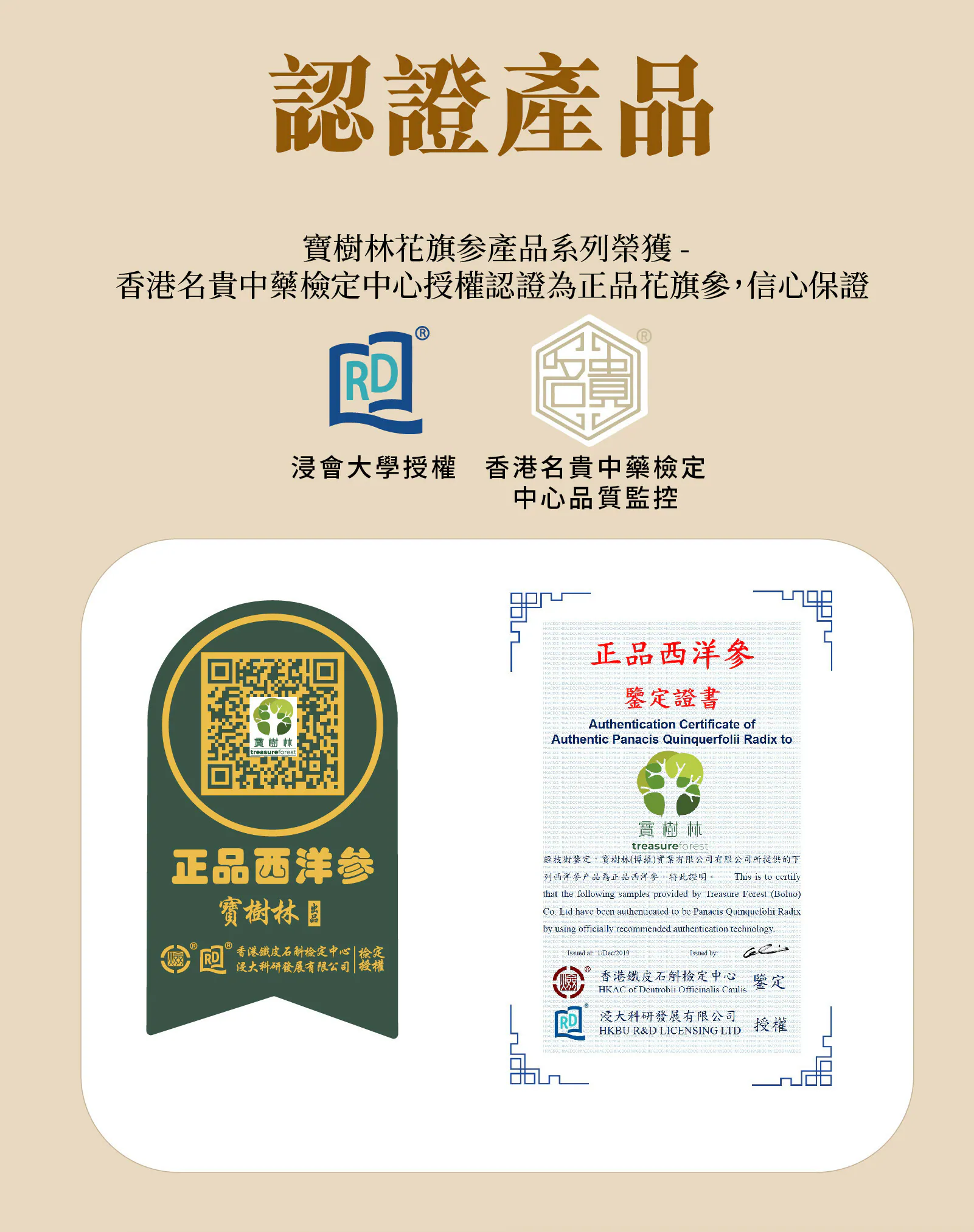 本產品香港包裝製造並經由香港浸會大學授權香港名貴中藥檢定中心認證,確保品質。
