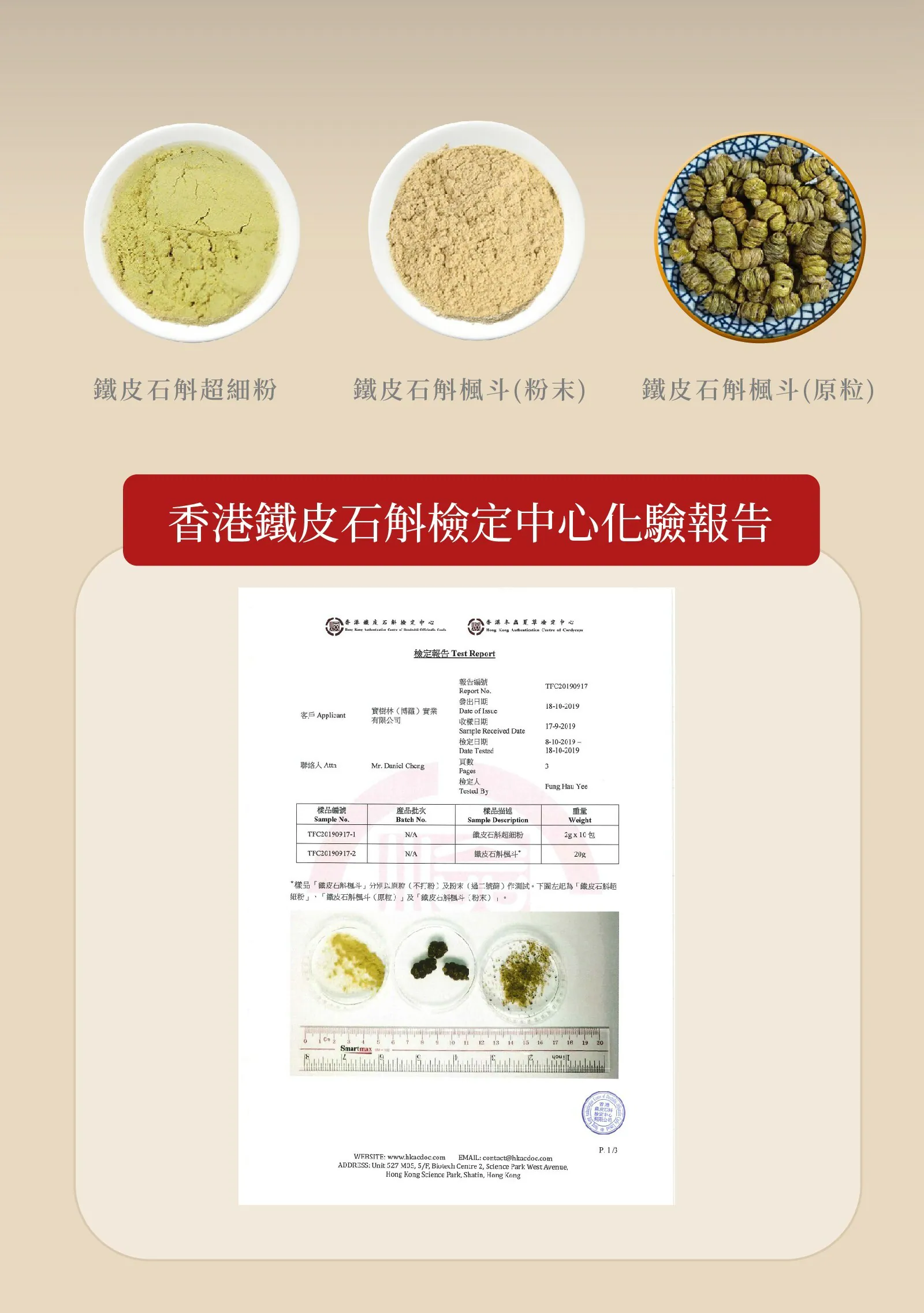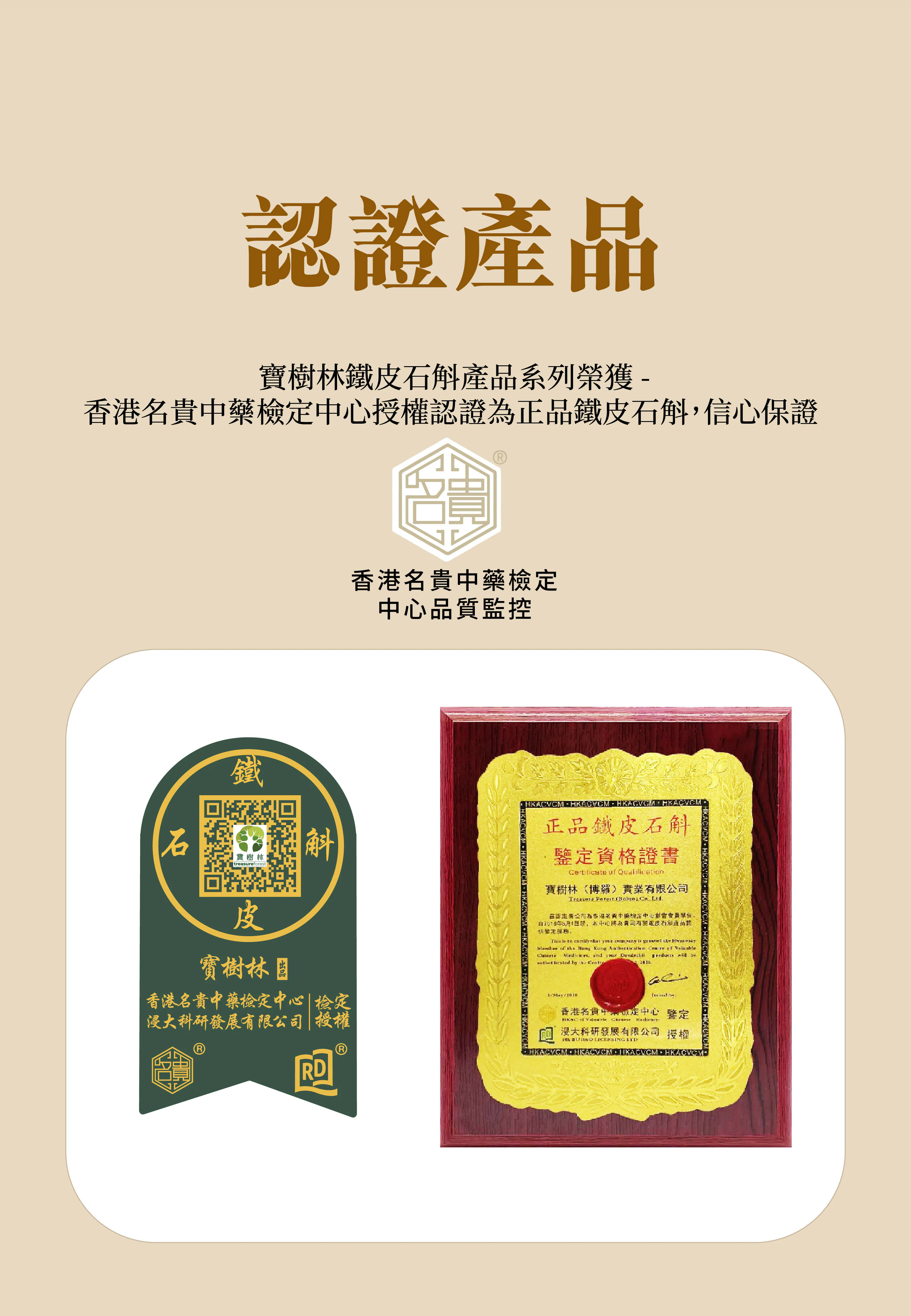 本產品香港包裝製造並已獲得香港浸會大學授權香港名貴中藥檢定中心認證為正品鐵皮石斛。