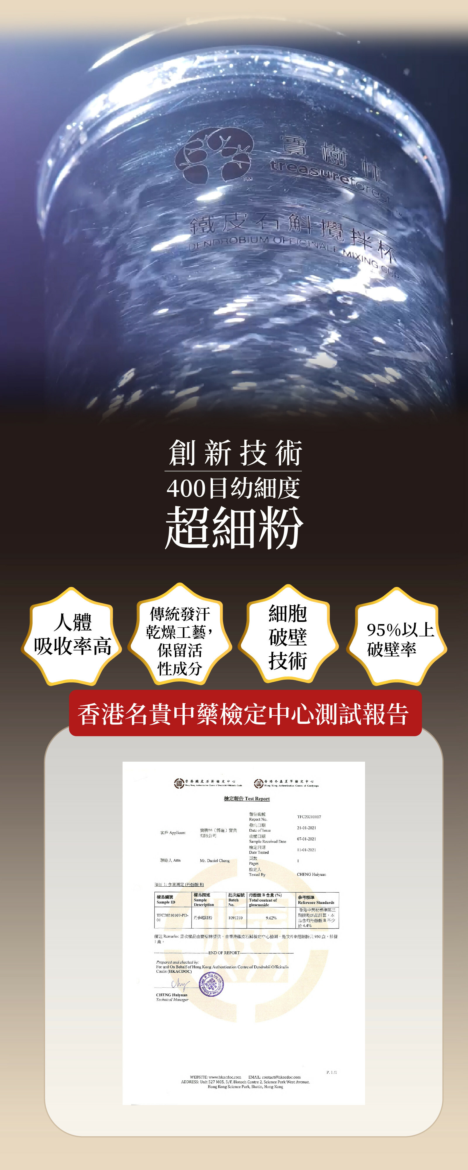 本產品香港包裝製造並經由香港浸會大學授權香港名貴中藥檢定中心認證,確保品質。
